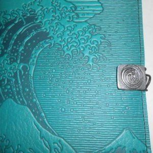 For sale is a leather Oberon iPad mini cover in the Great Wave design, in a beautiful teal green color.