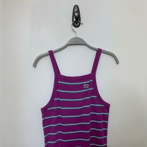 Purple striped dress with Obey logo.