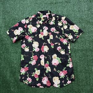 Obey Button Down Floral Shirt Men's Size S Black Short Sleeve Streetwear Skater