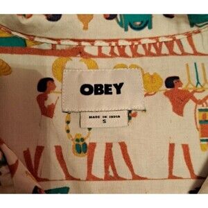 Obey Egyptian Pattern 100% Cotton Short Sleeve Collared Polo Shirt Size Small