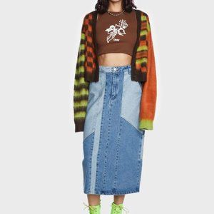 Obey Ellie Denim Midi Skirt Size 31 NWT