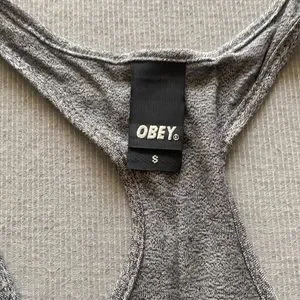 Obey Gray Razor back Tank. Design on front, plain back. Size S. Excellent condition.