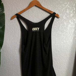 Obey | Grey Adopt Dog Racerback Graphic Tank | Size Medium