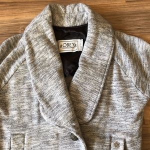I am reposhing this Obey jacket as I have waaayyy too many jackets and haven't worn it enough. It is made from thick cozy cotton and will keep you warm. Really cute with shall neck, 3/4 sleeves and pockets. Light heather gray fabric. It had a second layer of decorative buttons running parallel to the functional ones - but two were missing so I removed the last one. I think it looks better this way.