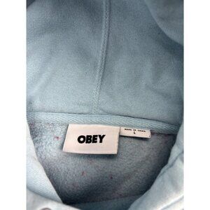 Obey Hoodie Sweatshirt Mens Large Light Blue Teddy Bear Love Graphic Embroidered