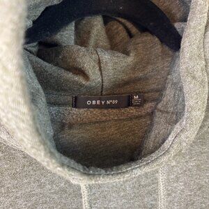 Obey MFG hoodie, olive green fleece hoodie, men’s streetwear sweatshirt, classic obey pullover, minimalist heather hoodie, soft cotton blend pullover