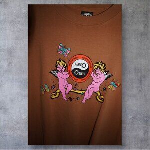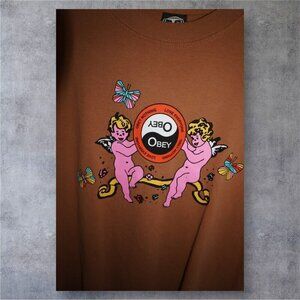 ✨ Vintage-Inspired OBEY Tee ✨Obsessed with this cherub + butterfly graphic on the perfect cocoa brown base 🧸💕Size M — Made in Mexico