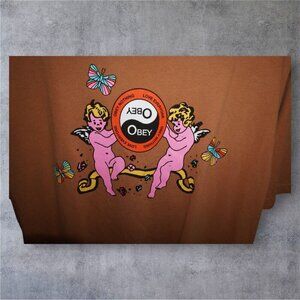 #obey #obeyclothing #streetwearstyle #graphictee #y2kstyle #cherubtee #vintagevibes #streetwearforsale #closetrevival #shopsmall #browntee #angelbaby #resellerstyle