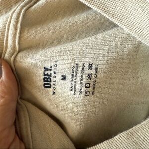 Obey Men’s Short Sleeve Cream and Green Tee Shirt Casual Skate Zumiez