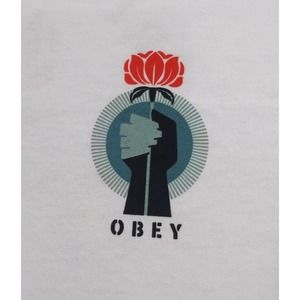 Obey Men's T-Shirt Rise Above Flower Fist White Size M Shepard Fairey.