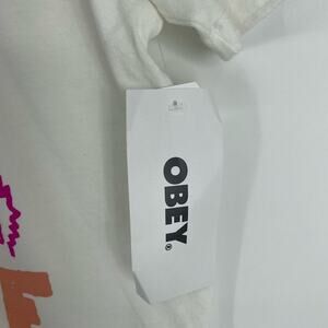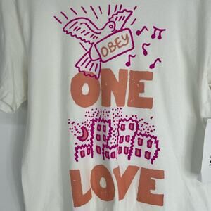 Obey NEW Dove Peace Graphic One Love Tee T-Shirt White/Pink Size Small