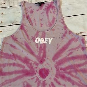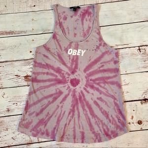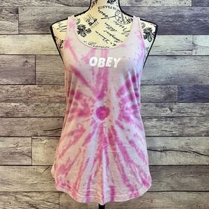 Obey Pink Tie Dye/White Logo Racerback Tank Top