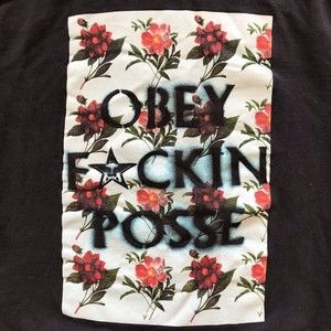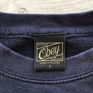 Obey Posse Sweatshirt Navy Graphic Rose Print Pullover Crew Neck Size Small.