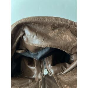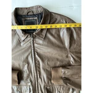 Obey Propaganda Faux Leather Bomber Jacket Men L Brown Collared Full Zipper