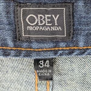 Obey Propaganda Jeans 34x32 Tight Stretch Straight Leg Blue Denim Men’s Slim Fit
