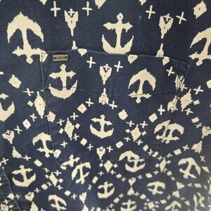 Obey Propaganda Navy Anchor 100% Cotton Short Sleeved Button Down Medium