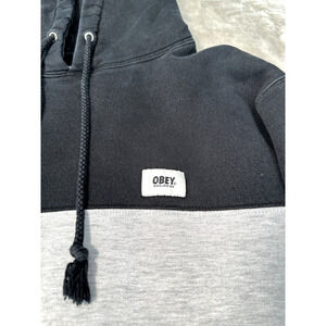 Obey Pullover Hoodie Sweatshirt Black Gray Skating Punk Mens Size L