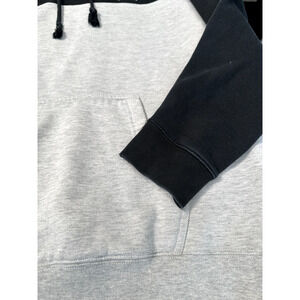 Obey Pullover Hoodie Sweatshirt Black Gray Skating Punk Mens Size L Good condition - see pictures for measurements. Distressing on hood and cuffs, small hole in left armpit in last picture.