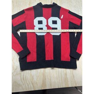 Obey Sweater Mens Large Red Black Polo Pullover Soccer Jersey 89 Stripe Knit