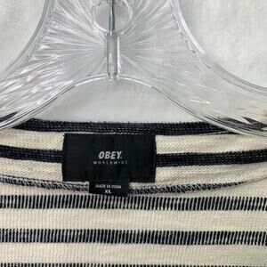 Obey Womens XL Black and White Striped Button Front Cardigan Long Sleeves