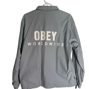 Obey Worldwide Coach Jacket | Light Blue Gray | Size M