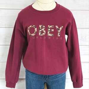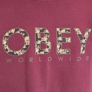 Obey Worldwide Propaganda Logo Cotton Crewneck Sweatshirt in Plum Size Small