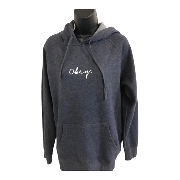 Obey charcoal gray oversized monogrammed hoodie size large new