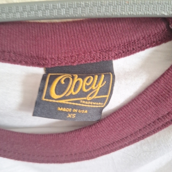 Obey extra small baseball tee shirt like new condition no rips or stains smoke free home
