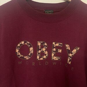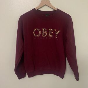 Hey crew neck sweatshirt Size small Maroon/wine color with floral “OBEY” Fleece inside Good used condition