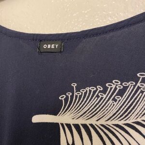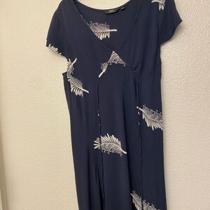 Obey navy blue front tie V-neck summer dress feather fern 100% viscose small