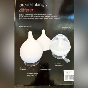 NEW IN BOX. NEVER USED. The H3's sleek appearance is a conversation piece. Objecto's original humidifier is small in appearance but huge in performance. Designed to blend with any room's decor and further enhance the experience with its aroma therapy feature. The H3's timer mode can close the unit after two or four hours, and like all of our humidifiers, the tank will shut off when empty. I don't think this comes with a filter. NEVER USED.