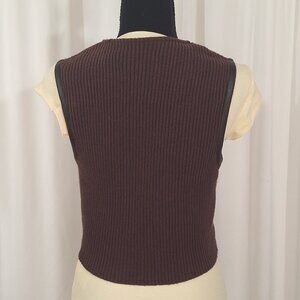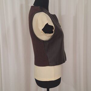 Objects D’Art Brown Pleather & Knit Vest Size Med 90s Artsy Vintage Made in USA
