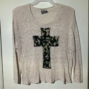 Cotton polyester- I’m guessing bc the tag is not on it. Made in USA