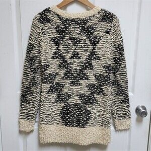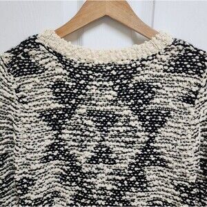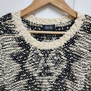 Objects D'Art Sweater Womens L Cream Black Chunky Nubby Knit Boho Aztec