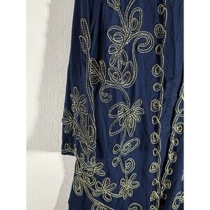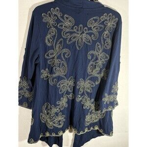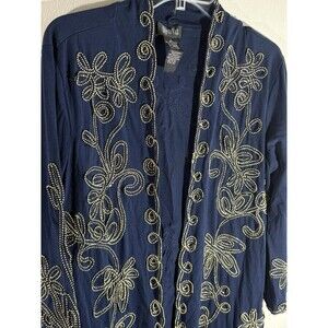 Objects Dart Womans Navy Embroidered Gold Trim Jacket Asymmetrical Large