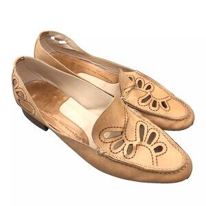Elevate your travel or casual look with these stylish Objects In Mirror Vero Cuoio Cut Out Loafers. Made in Italy from high-quality leather, these slip-on flats feature a round toe shape and solid pattern in a beautiful brown color. The lining material is also made of leather, ensuring comfort and durability. These women's shoes are perfect for the summer, fall, or spring season. The outsole material is also made of leather, providing excellent traction and stability. With a standard shoe width and EU size 38, these loafers are a great addition to any wardrobe. The brand name is discreetly placed on the sole, adding to the sleek design of the shoe.