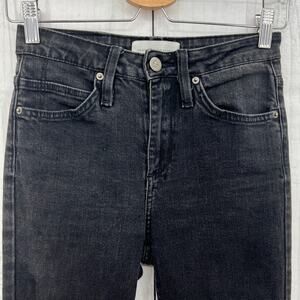 Objects Without Meaning 26x28 Short Distressed Black Skinny Ankle Jeans Stone Wash High Rise Raw Edge Cuff Women's