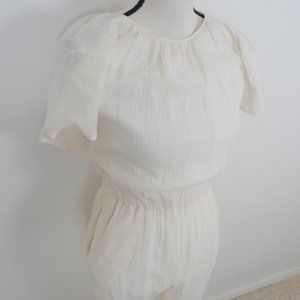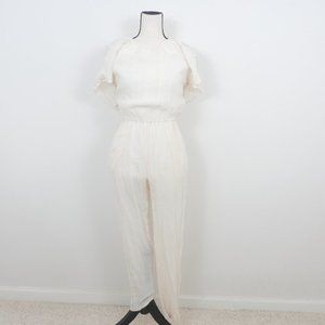 Objects Without Meaning Cream Gauze Short Flutter Sleeve Skinny Leg with Side Pockets Size Small Jumpsuit
