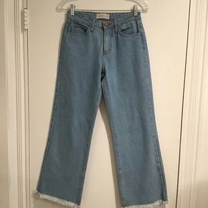 Objects Without Meaning Wide Leg Jeans, frayed hem, 100% cotton, w:26, r:9.5, in:28