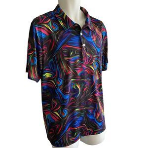 Obnoxious Golf Polo Shirt Men M Neon Wind Loud Psychedelic Trippy Performance