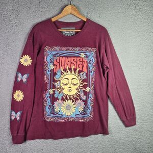 Show your festival vibe with this boho-inspired Obsessive Love long sleeve tee! Gorgeous maroon cotton with exclusive “Sunset” and “Moon Light” graphics—plus butterflies and daisies down the sleeve for dream-worthy detail. Perfect for casual days, layering, or channeling your inner celestial goddess. Soft, breathable, and brand new condition; tag confirms authenticity and origin. Feel confident, add a trendy edge, and enjoy a true statement piece. No flaws, tears, or stains—ready to style for fall and festival season!