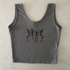 Obsessive Love Grey Dancing Skeleton Cropped Tank Top