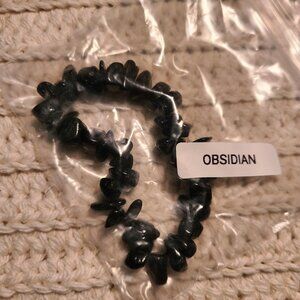 Handcrafted stretch bracelet featuring natural obsidian chip beads in deep black tones. Each irregular bead is polished to reveal the stone’s glossy finish and grounding energy. Obsidian is known for protection, clarity, and emotional balance—perfect for crystal healing, boho styling, or minimalist fashion.