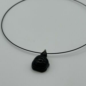 Obsidian turtle carving pendant on wire choker with silver hardware