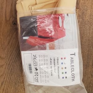 Obstal 210GSM rectangular tablecloth. Champagne color measures 60in×84in for indoor and outdoor use. Water resistant microfiber.