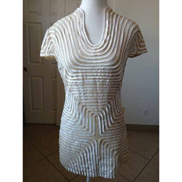 Obstinee By Ika Womens Blouse Tunic Tan Beige Textured Cap Sleeve Size 4 Career