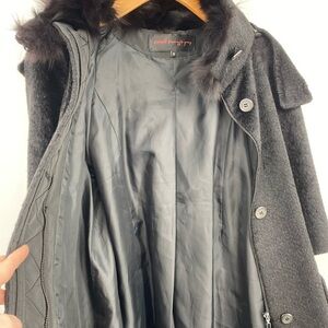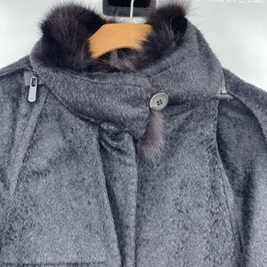 Obzee Kang Jin Young Real Fur Trim Hooded Coat Jacket Womens Size 0 Black Goth