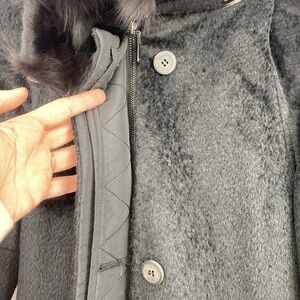 Obzee Kang Jiyoung Real Fur Trim Hooded Coat Womens Size 0 Black Winter Lined. Detachable hood. Winter Jacket Belted. Full Zip Closure. Side Pockets.
