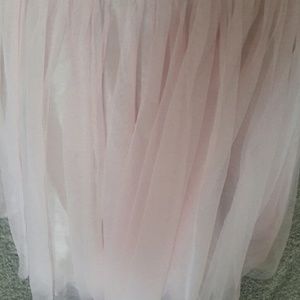 Size 10 Oc by Oc dress. Worn this 1x Can be worn with or with out the side ribbon. Zips in the back and has 1 layer of baby pink tull followed by the gold silk like fabric. white tull. The middle part of this dress is covered in flower lace . Bought at Dillards