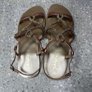 Oca-Loca Valencia Sandals Metallic Rose Pink Leather Rhinestone EU 38 US 8 NWOT